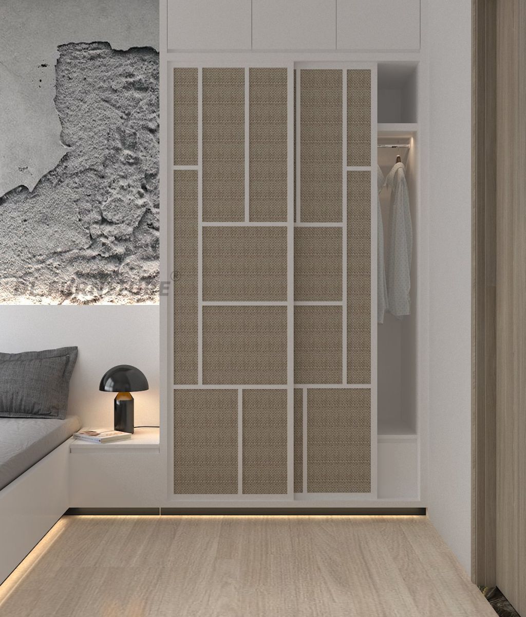 Chiếc tủ áo lấy cảm hứng từ phong cách Nhật Bản, được thiết kế gọn nhẹ mà tinh tế, với các đường nét thanh thoát, lịch sự, cũng là một điểm nhấn nữa cho không gian phòng ngủ. Bề mặt tủ được bọc vải hòa hợp với tự nhiên, với thiết kế cửa trượt vừa tiện lợi, vừa tiết kiệm diện tích.
